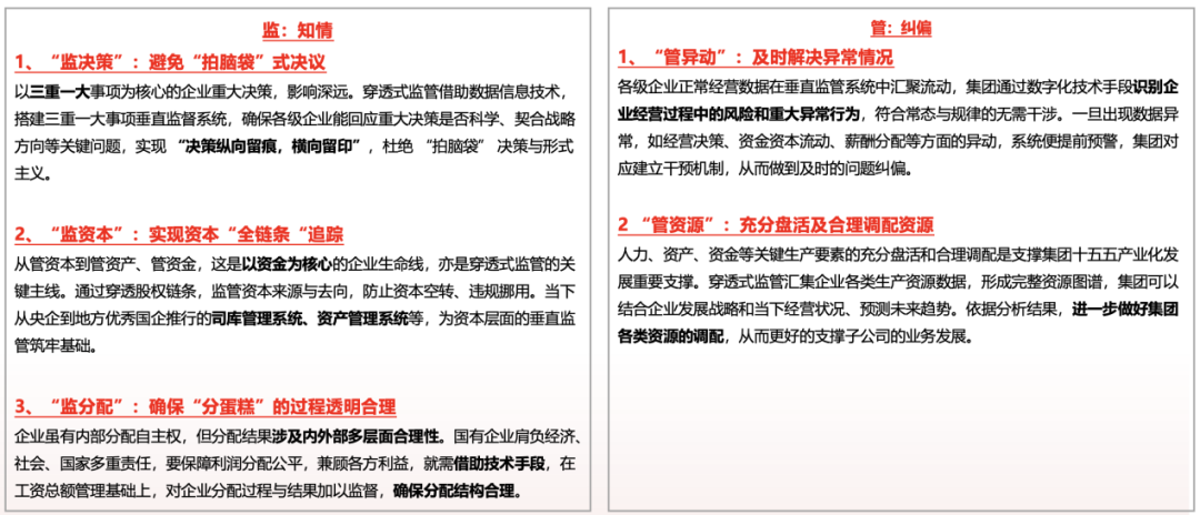 上面这些已发现的问题,说明传统的国资监管已经无法满足新形势下的要求:信息不对称导致监管滞后、资本配置效率与风险防控能力不足。