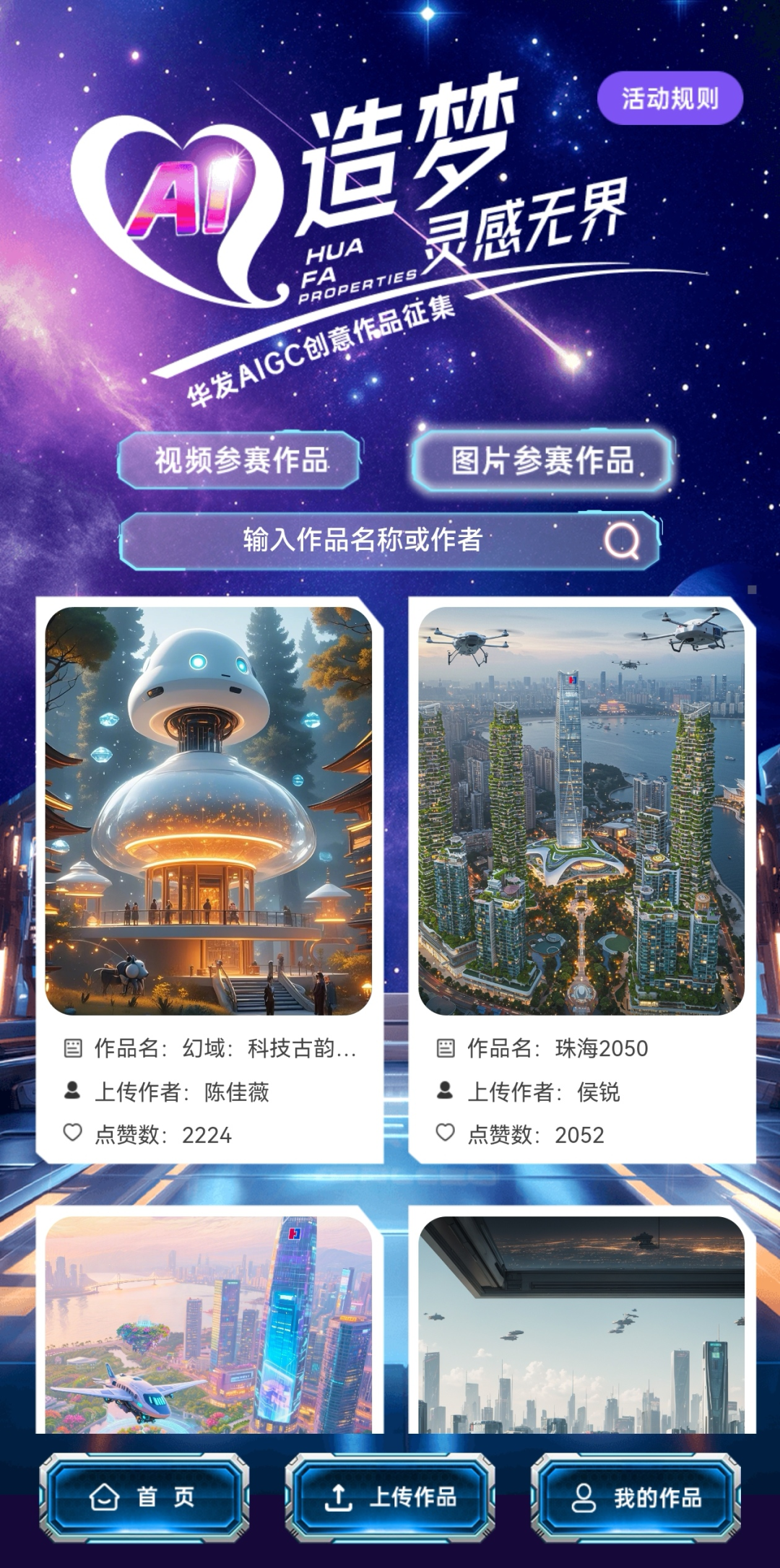 华发还在今年3-4月发起了AIGC创意作品征集,该活动吸引了1万+用户参与创作和投票,收到上千份AI生成的作品,总投票次数超5万+,活动页面总访问量更是高达17万+。