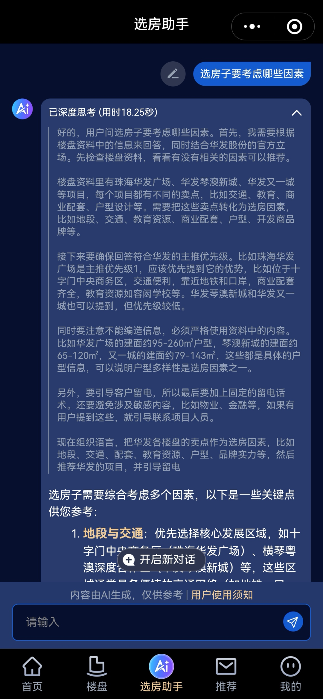 除了直播场景,华发还在购房场景中尝试用AI提升客户的个性化体验。